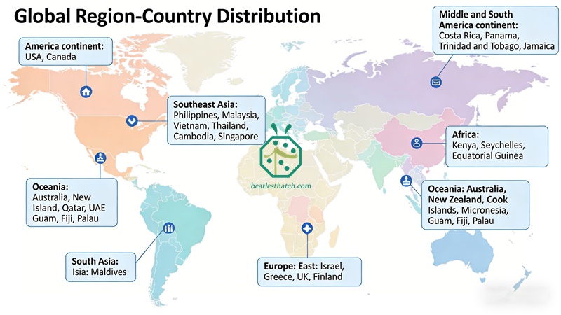Australia, New Zealand, Kepulauan Cook, Mikronesia, Guam, Fiji, Palau, Vanuatu