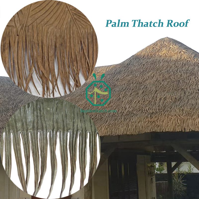 A sintetik sawit bumbung menawarkan campuran ideal kecantikan dan kepraktisan untuk struktur peribadi atau komersial anda, seperti banglo, palapa, tiki bar, Bali Hut, dan lain-lain Bumbung sawit buatan sangat bagus untuk kebakaran Retardan. Di bawah Amerika Syarikat Standard UL-94, 7 Indeks Antara 8 pangkat yang terbaik gred.
