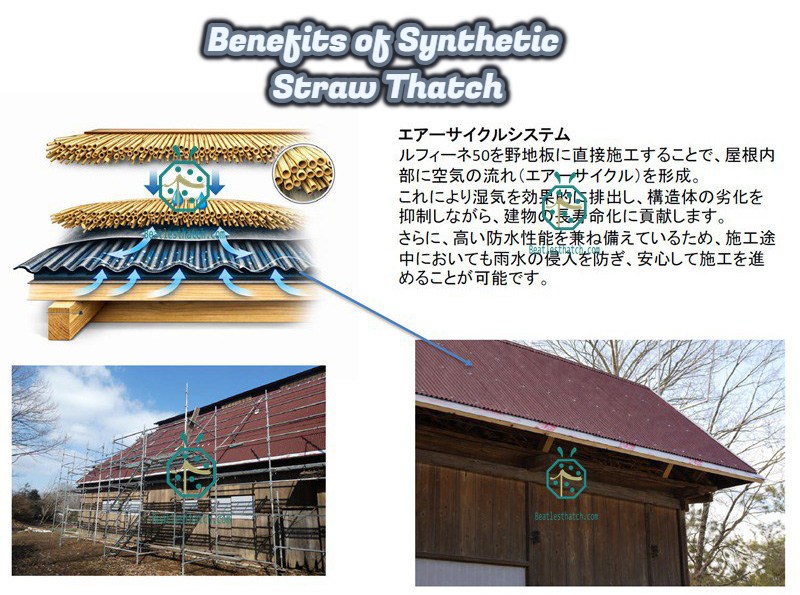 Pengedar sah Jepun kami telah berjaya menyelesaikan projek pemulihan warisan di Wilayah Yamagata, menggantikan jerami semula jadi yang reput dan tumbang pada struktur tradisional dengan premium kami. jubin bumbung jerami sintetik .