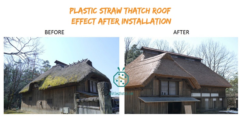 Bumbung yang telah siap dibina menampilkan penampilan yang sangat licin dan seragam yang mengatasi tekstur estetik dan ketahanan jerami semula jadi tradisional. Tidak seperti bahan organik yang mudah reput dan luluhawa, penyelesaian sintetik kami menawarkan prestasi bebas penyelenggaraan selama beberapa dekad sambil mengekalkan ciri seni bina Jepun yang asli.